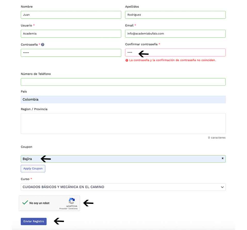 Rellena el formulario con tus datos