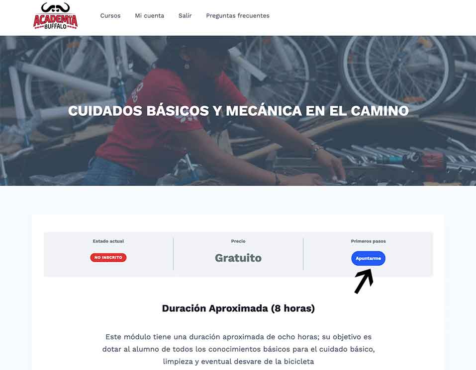 Click en el botón (Apuntarme). automáticamente lo dirige a la pagina inicial del curso