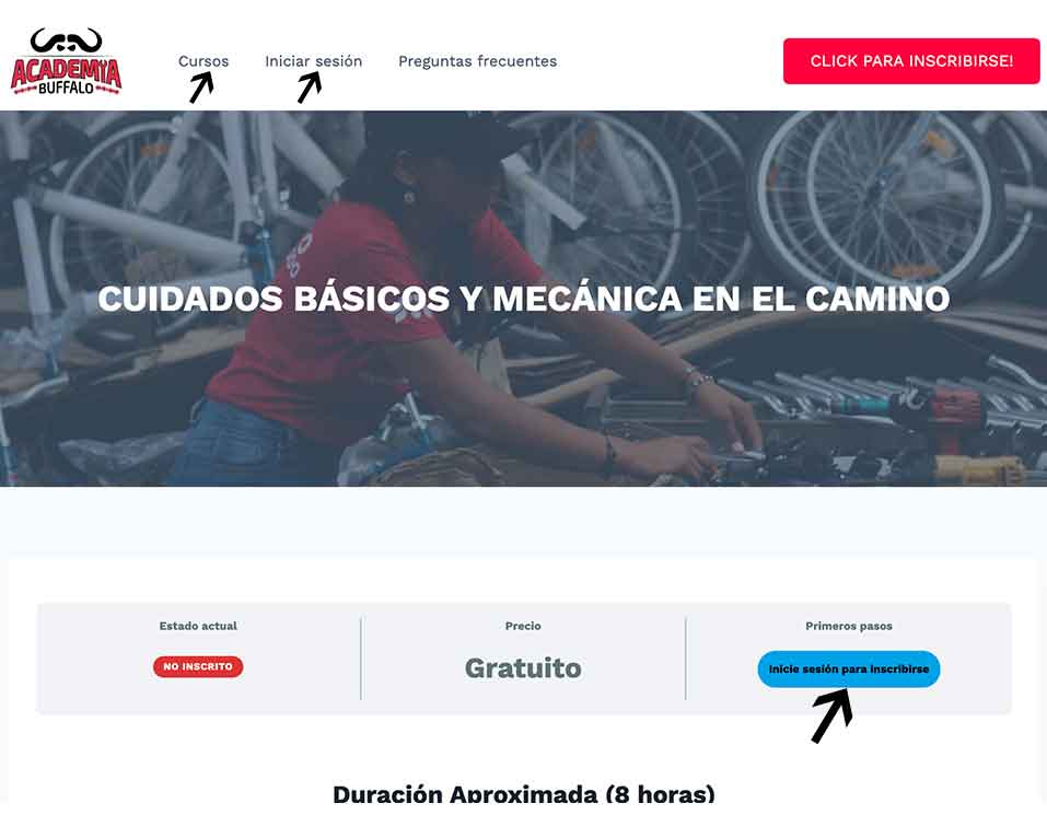 Existe dos opciones para inscribirse. Puede ser en el botón rojo (CLICK PARA INSCRIBIRSE) o en el Botón azul Inscribirse Ahora!