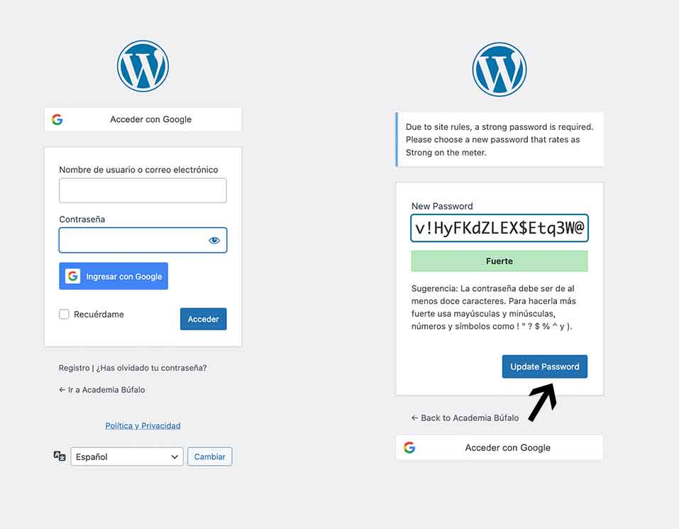 - La plataforma te pedirá actualizar tu contraseña por una más segura.